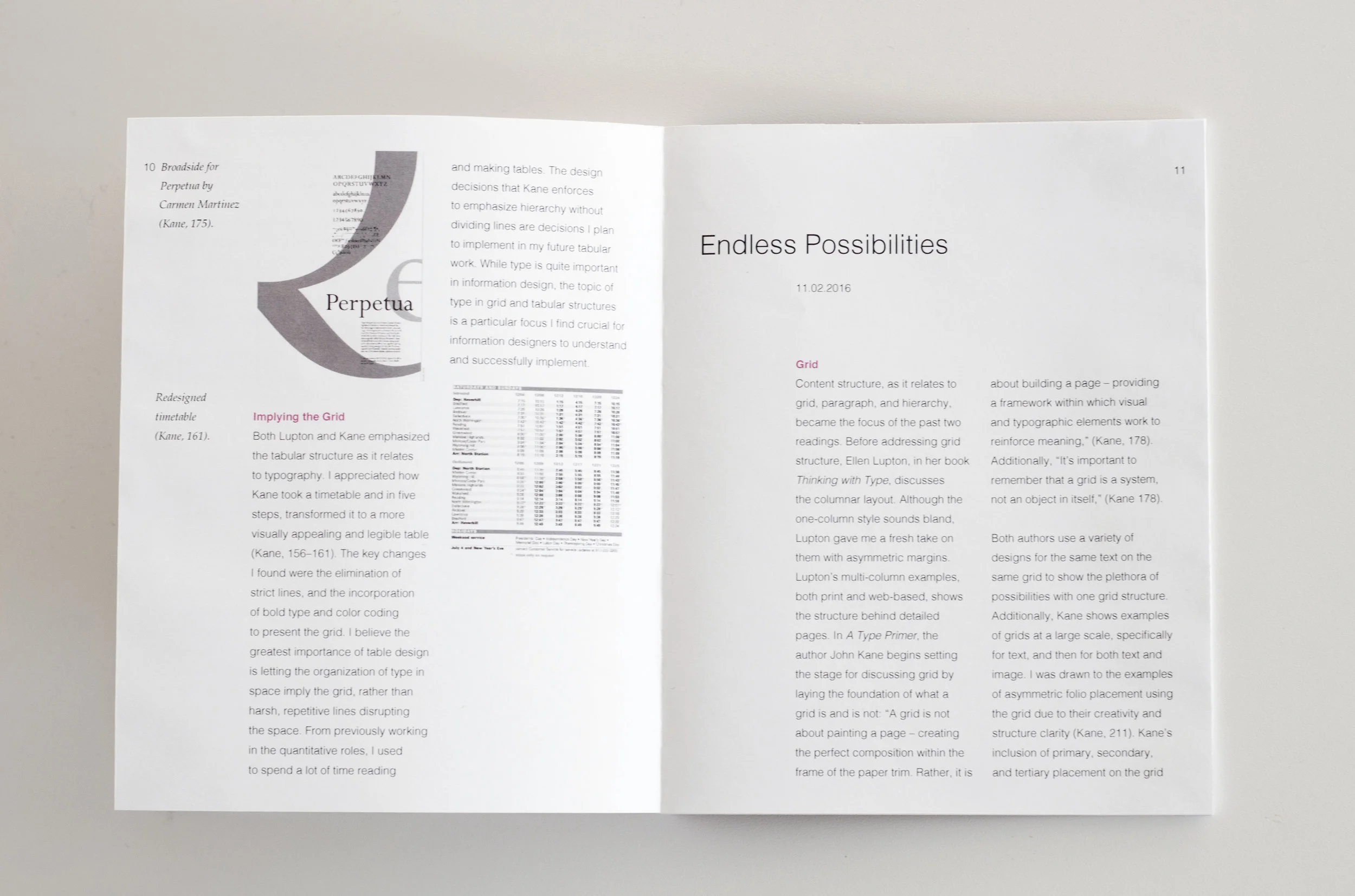 Incorporating photos and captions was a part of the design problem we needed to solve. In order to differentiate caption placement and style, I placed them in the first column aligned with the photo they went with and represented them in an italicized serif typeface. Some images are my work, while others are from our readings, as shown below. At the beginning of new chapters, I included the date in which I wrote the paper.